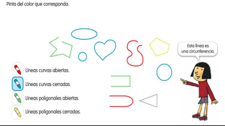 | Líneas poligonales y curvas, abiertas o cerradas. | Reconocer, comparar y diferenciar entre sí líneas poligonales y curvas, abiertas o cerradas. | Valorar el uso de los tipos de líneas en el entorno del alumno. |