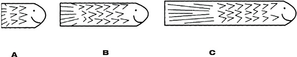 Les da de comer menos alimento a los peces B y C que al pez A, a pesar de que este último es el de menor tamaño. Luego, aun cuando el investigador le recuerda a Les la consigna de la tarea, ella entrega al pez B la misma cantidad de alimento que al pez A, y al pez C una cantidad inferior que a los dos anteriores:
