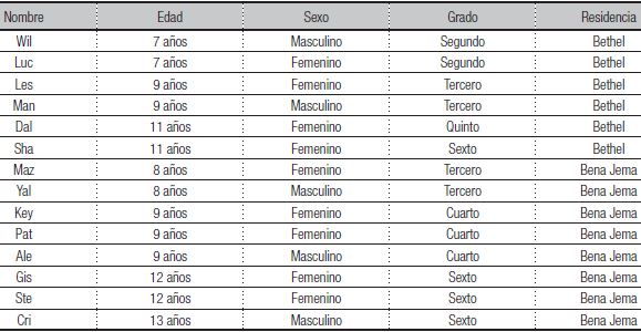 La lengua materna de los participantes es el shipibo-konibo, aunque todos demostraron tener domino del español. La comunidad de Bethel se encuentra a 7 horas de distancia, en bote, de la ciudad de Pucallpa, mientras que la comunidad Bena Jema se ubica a 40 minutos de la misma ciudad, en el distrito de Yarinacocha. La selección de los participantes fue accidental, procurando contar con un rango de edad que permitiera observar diferencias en el desarrollo del pensamiento multiplicativo. Para acceder a los participantes de Bethel, se contó con el consentimiento de sus padres y de la comunidad, incluyendo al jefe de la misma y al profesor responsable de la escuela. Para acceder a los estudiantes de Bena Jema, se contó con el consentimiento de la directora de la escuela y del profesor a cargo del aula. A todos los niños se les explicó el objetivo de la evaluación y se les pidió su asentimiento. Las principales características de los participantes se presentan en la tabla siguiente: