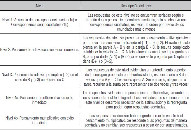 Siguiendo a Clark y Kamii (1996) , existen cinco posibles niveles de respuesta: