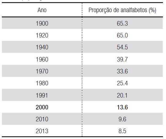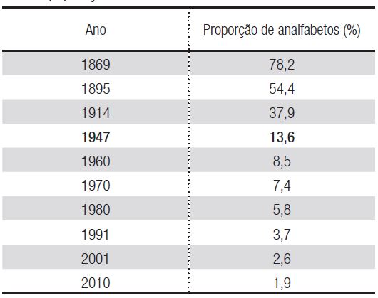 Tal diferença tem efeitos importantes. Ela permite compreender por que o analfabetismo se torna residual na Argentina já na década de 1940, quando menos de 15% da população de mais de 15 anos declara-se analfabeta, como mostra a Tabela 1, enquanto no Brasil isso acontece no ano 2000, como mostra a Tabela 2.