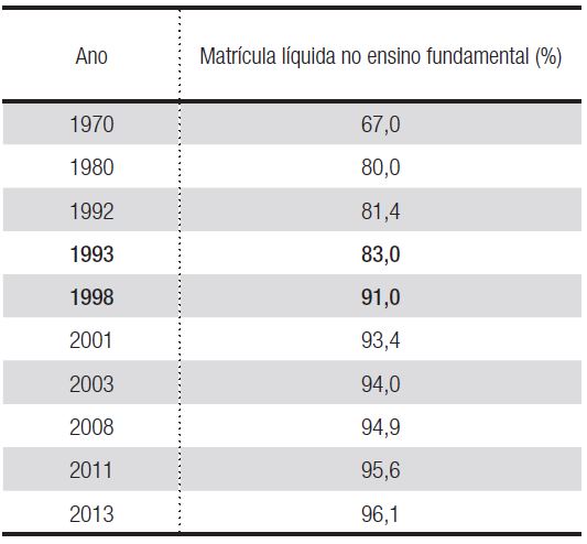 Ainda é importante notar que, no caso do Brasil, a maior parte das crianças e jovens matriculados no que chamamos aqui de ensino fundamental encontrava-se, até o final dos anos 1980, cursando as quatro séries iniciais desse ensino, que correspondia, portanto, ao antigo ensino primário. A passagem para a segunda etapa do ensino fundamental constituiu-se num entrave de grandes proporções para o avanço da escolarização dos grupos menos privilegiados durante a maior parte do século XX (RIBEIRO, 1991). Nos anos 2000, esse entrave deslocou-se para a finalização do ensino secundário.