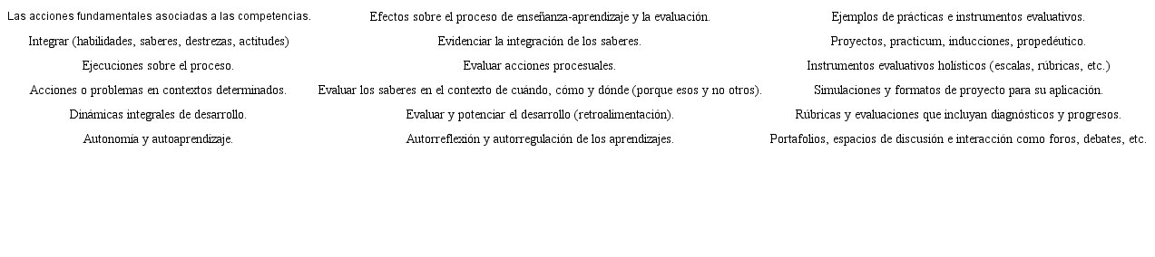 En síntesis, la evaluación por competencias exige un modelo evaluativo centrado en los procesos y procedimientos, fundamentalmente en la capacidad del saber hacer pero integrando la conjunción de los saberes complejos e integrales. Además, debe evidenciar resultados paso a paso y no solamente orientados al resultado final de un producto de aprendizaje. La idea es reforzar las capacidades y competencias del estudiante para enfrentar contextos de cambio y transferencia de recursos educativos en diferentes espacios centrados en la toma de decisiones, para evitar la mecanización de las competencias como una forma de reproducir el modelo productivo. En palabras de Bolívar debemos evitar caer en “la competencia del mundo empresarial y profesional como un modelo de formación vinculado a las políticas neoliberales que subordinan la educación a las demandas del mercado laboral y la gestión de los recursos humanos” (2007, p. 42).