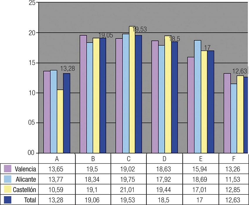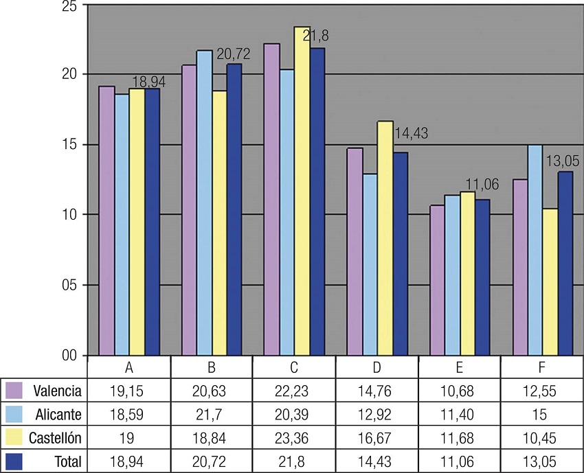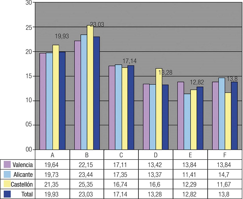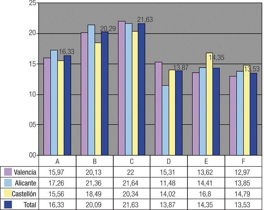 Para el desarrollo de la fase experimental se distribuyó entre los profesores de 2º de bachillerato un cuestionario sencillo ordenado por destrezas lingüísticas. Como se ha mencionado anteriormente, el número total de profesores que respondieron al cuestionario fue de 214. Se calcula que dichos profesores, según datos oficiales aportados por la Consejería de Educación de la Generalitat Valenciana, imparten clase a cerca de 25.500 estudiantes de segundo curso de Bachillerato (último curso del ciclo que precede a la PAU), lo que representaría un amplio porcentaje de los alumnos totales de la Comunidad Valenciana, por lo que los resultados pueden ser considerados fiables.