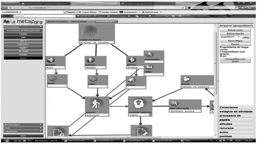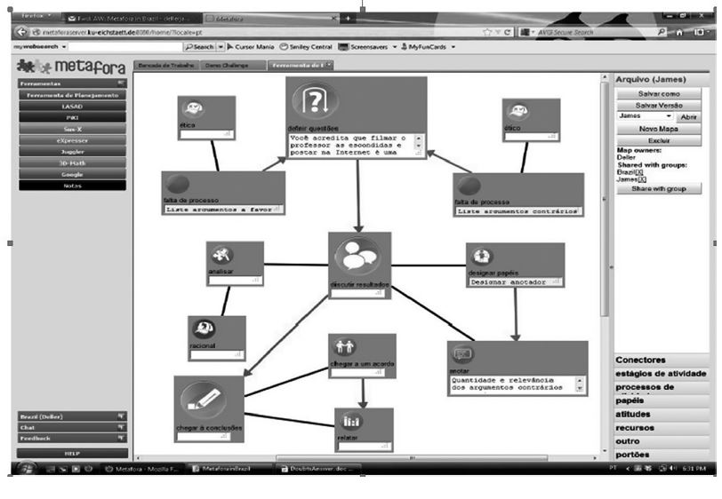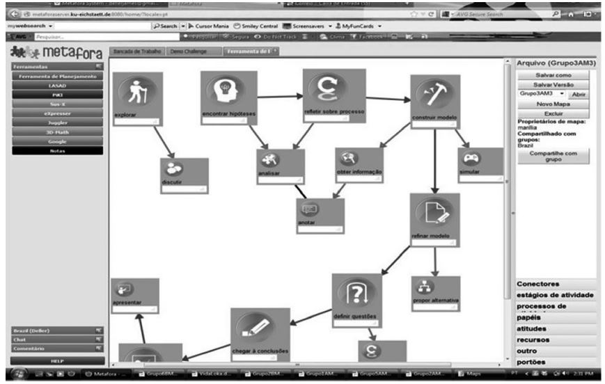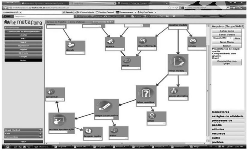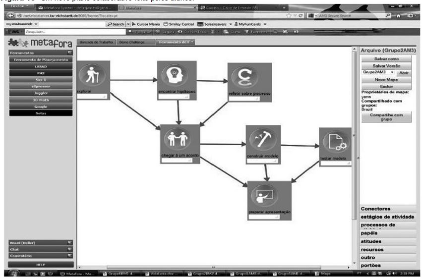 O Projeto Metafora, financiado pelo programa da Comissão Europeia Framework 7 TIC, aborda uma ferramenta baseada na web para aprender a aprender conjuntamente. Na ferramenta de planejamento Metafora, uma linguagem visual para gerar planos de colaboração desempenha um papel essencial no apoio ao engajamento mútuo dos alunos, criando um espaço compartilhado para coordenação de colaborações. Planos compartilhados na ferramenta de planejamento Metafora podem ser considerados um rico repertório de âncoras referenciais para colaborações e sua regulação. Na próxima seção, apresentaremos um estudo de caso de sucesso, que avalia a ferramenta de planejamento Metafora em um contexto brasileiro.