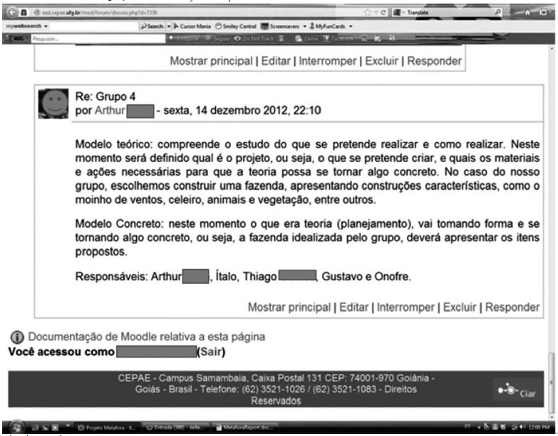 Nas atividades 5 e 6, os alunos continuaram a criar novas formas de colaboração. Veja o seguinte exemplo na figura 13.