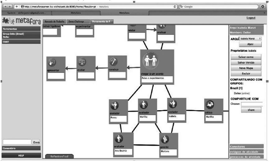 Uma contribuição única do sistema Metafora para a área de CSCL é a sua explícita representação do esforço de colaboração como um artefato visual e interativo ( WEGERIF et al., 2012). Esse artefato tem o propósito de permitir aos alunos concentrarem-se na compreensão da metacognição acerca de como eles se engajam na aprendizagem colaborativa.