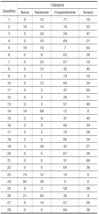Entre os 58 entrevistados, 97% disseram que o uso da plataforma ajudou a colaboração no grupo durante a execução das atividades, 70% afirmaram que puderam expressar-se apropriadamente usando a ferramenta de linguagem visual, e 100% declararam que os membros do grupos foram capazes de se expressar através da plataforma. Isso indica que eles foram competentes ao utilizarem a ferramenta. A esse respeito, veja a tabela 2 (questões 12, 17 e 18). Com base nesse fato, pode-se supor que eles não tiveram problemas de autoestima ao interagirem por meio da ferramenta de linguagem visual.