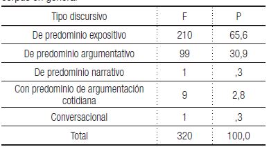 Esta categoría comprende sub-categorías: 1) predominantemente expositivo; 2) predominantemente argumentativo; 3) con predominio de argumentación cotidiana, ( PADILLA; DOUGLAS; LÓPEZ, 2007; 2011); 4) conversacionales ( KAUFMAN; RODRÍGUEZ, 1993).