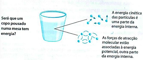 A variação de energia interna de um sistema pode ser detectada macroscopicamente por uma variação de temperatura ou por uma mudança de estado durante a qual a temperatura permanece constante. Cada material comporta-se de modo diferente quando é sujeito a aquecimento. A capacidade térmica mássica é uma grandeza física que caracteriza termicamente cada material. Por exemplo, a capacidade térmica mássica da água líquida é: