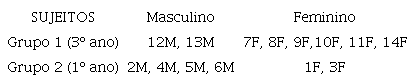 Com vistas a preservar suas identidades, optou-se por nominar os alunos com numeração simples, seguida do gênero. O resultado encontra-se sintetizado na Tabela 1: