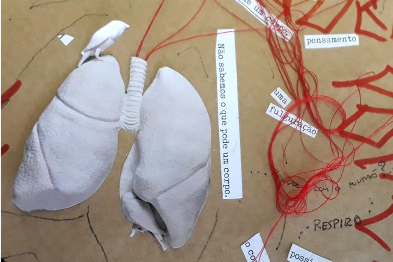 Percebemos, em um certo momento da experimentação produzida na disciplina, que os quinze minutos destinados à produção já estava longo demais, talvez porque havíamos saturado o espaço e, talvez, já não encontrávamos as brechas tão necessárias para a experimentação. Se no início, os vinte minutos não eram suficientes, ao final já não havia mais espaço para experimentar… era no meio que o pensamento ganhava velocidade. Por isso, talvez seja pertinente questionar: como manter um pedaço de “meio”, de “entre”, pulsante? Como não saturar demasiadamente os espaços? Ou como, em meio à saturação, produzir brechas de potência?