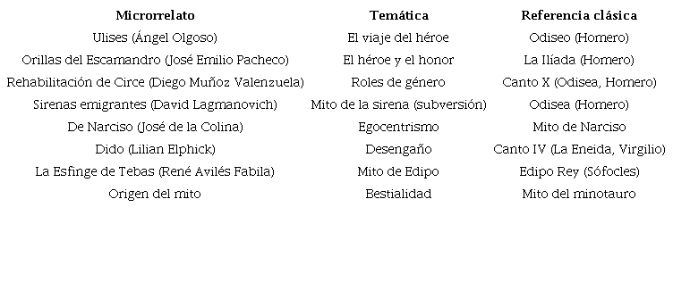 En la investigación se utilizaron diversos tipos de instrumentos. Estos fueron entrevistas semiestructuradas, relatos de vida lectora y un blog, el cual fue creado como un hipertexto didáctico digital y multimodal. Este último titulado Paideia en fracción mínima7 de la plataforma Wordpress fue el medio con el que interactuaron virtualmente los profesores entre los meses de junio y agosto del 2017. En dicho medio, los participantes accedieron a distintas maneras de aproximar la lectura a partir de microrrelatos que reelaboraban temas, personajes y obras clásicas grecolatinas (tabla 2). La estructura del blog permitía diferentes tipos de navegación, acceso a diferentes sitios por medio de enlaces y opinar sobre las posibilidades didácticas presentadas.