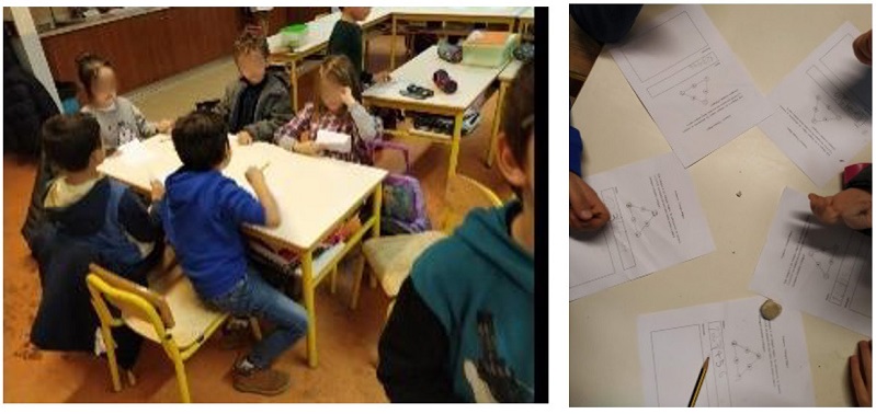 A tarefa foi iniciada com a etapa de compreensão do problema, que envolveu a sua leitura, reconto e algumas perguntas de interpretação. Dando-lhes a oportunidade de intervenção e o protagonismo, depois de terem tempo para construir uma solução, foram explorados os diferentes raciocínios, existindo um debate de ideias sobre as múltiplas formas de resolução encontradas. Foram identificadas algumas estratégias de resolução, tais como a identificação de um padrão/regra ou a formulação de tentativas.