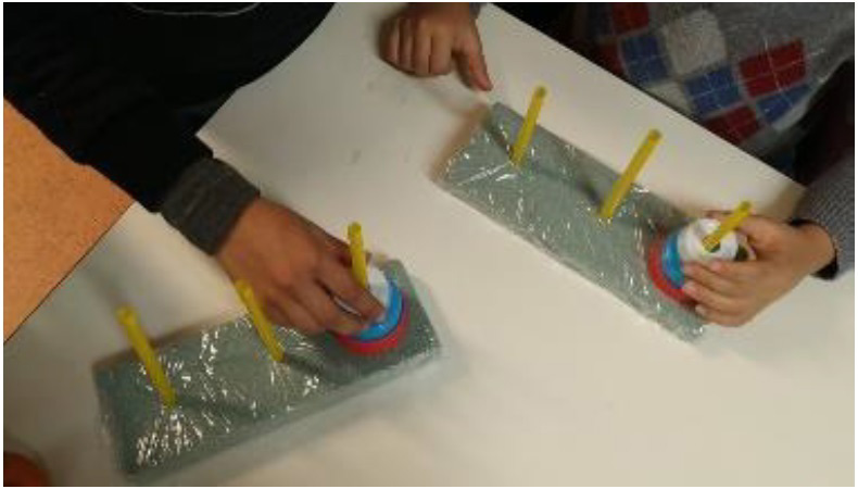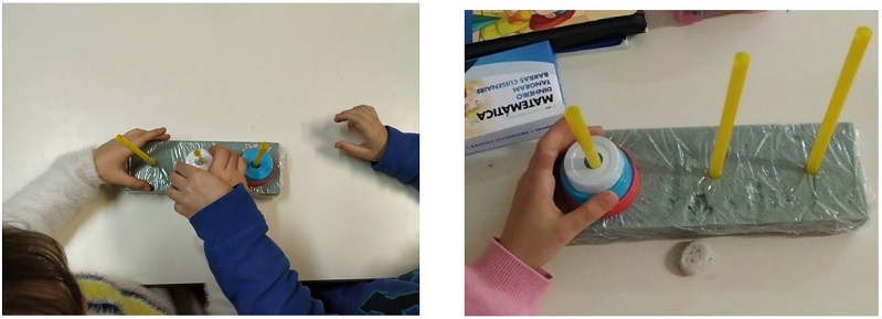Mais tarde, desafiou-se para que descobrissem soluções com o menor número de movimentos possíveis, sendo que grande parte deles conseguiu pelo número mínimo de movimentos do problema, perante as peças disponibilizadas ( Figura 22). Destaca-se a utilização de estratégias, tais como a simulação, a dedução lógica e a elaboração de tentativas com indução.