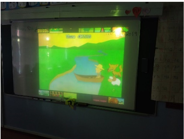 A forma alternativa foi confirmada por meio de uma versão do problema convertida para jogo no computador, projetada no quadro, como um passo para a abstração ( Figura 5). Neste, a turma, com uma menor intervenção do professor, conseguiu, mais uma vez, resolver com sucesso o problema.