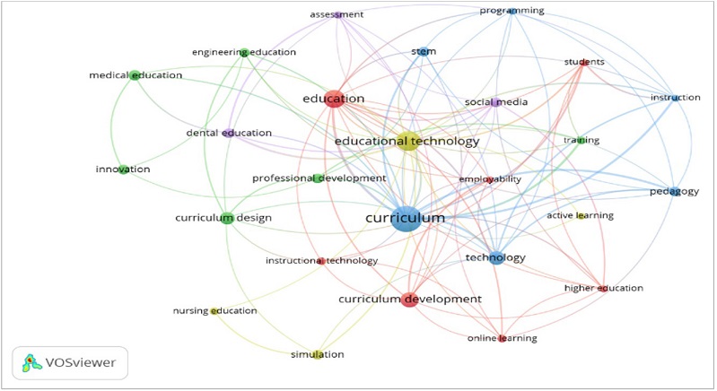 Inicialmente, se identificaron un total de 82 palabras clave entre los documentos analizados, en los que se destacaron los siguientes términos: currículo, educación con tecnologías, desarrollo profesional y desarrollo curricular, actividad docente, entre otros. El Gráfico 1 representa los conceptos más destacados a la hora de indagar sobre el tema de los modelos didácticos mediados por las TIC.