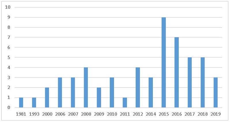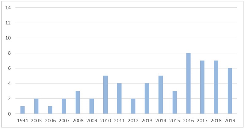 From the BDTD documents – theses and dissertations – an increase in publications in the last decade is noticeable ( Figure 6).