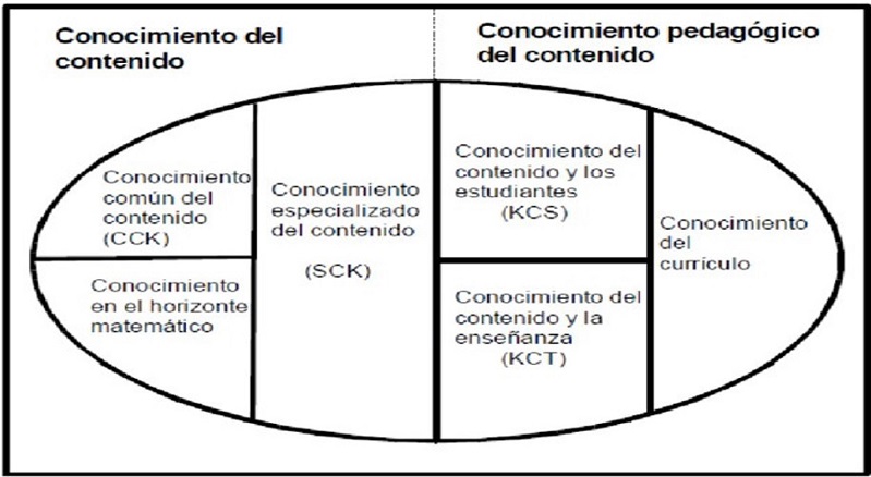 De acuerdo con el enfoque del MKT, el conocimiento profesional del docente de Matemáticas está formado por diferentes conocimientos, tal y como muestra la figura 1.