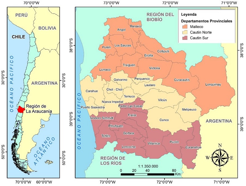 Como ya se ha mencionado, el contexto de estudio se sitúa en La Araucanía, Chile (ver Figura 1), que históricamente ha obtenido los más bajos resultados en las evaluaciones estandarizadas en el Sistema de Medición de la Calidad de la Educación (SIMCE) a nivel país (ARIAS-ORTEGA, 2020).