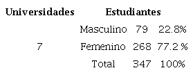 Los datos que se plantean en este documento se realizan a partir de los aportes que hacen 347 estudiantes de la carrera de Educación de siete universidades de la República Dominicana. Estas instituciones de educación superior (IES) se encuentran ubicadas en zona urbana, rural y rural apartada del país. Además, algunas de ellas imparten la carrera de Educación desde hace cinco años o menos y otras las imparten desde hace más de veinte años. Las siete universidades son de carácter privado; sin embargo, los programas de educación que poseen son subsidiados por el Estado y los estudiantes acceden a ellos a través de becas de cobertura completa.