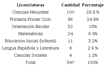 Las licenciaturas que cursaban estos estudiantes se desglosan a continuación: