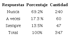 Se observa en el cuadro anterior que mucho más de la mitad de los estudiantes de la muestra habían participado más de dos veces en procesos de evaluación de sus docentes, lo que implica una experiencia en este tipo de tarea.