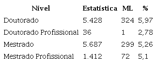 Na Tabela 7 temos o detalhamento por nível do programa de pós-graduação.