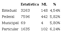 Na Tabela 3 as informações estão separadas por tipo de Instituição de Ensino Superior (IES).