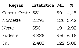 Na Tabela 4, a seguir, estão as informações separadas por região do país.
