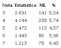 A divisão das informações por nota do programa está na Tabela 5, a seguir.