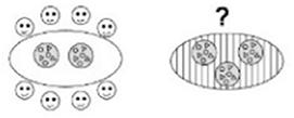 Face a uma representação pictórica de 3/4 envolvendo quantidades discretas, os resultados foram francamente positivos (87,1%) quando se apresentavam 4 círculos dos quais 3 estavam pintados