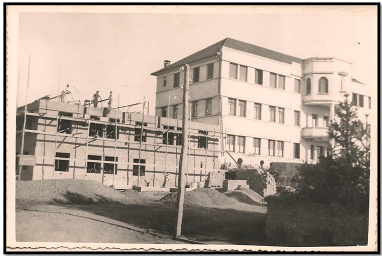 O prédio escolar em sua inauguração, em 1943, era de alvenaria, tinha três andares e contava com biblioteca escolar. Com vistas ao processo de implantação do curso ginasial feminino criaram-se salas de geografia, história, desenho, música, laboratórios de ciências, refeitório e alojamentos. Estava situado na área central, próximo ao Hospital São Carlos, à Igreja Matriz e ao Grupo Escolar Farroupilha 17. Diante do exposto, entendemos que a arquitetura escolar de forma alguma pode ser considerada neutra, pois ela, por si só, é um programa de ensino, uma construção cultural que produz discursos, em que “não apenas o espaço-escola, mas também sua localização, a disposição dele na trama urbana dos povoados e cidades, tem de ser examinada como um elemento curricular” ( ESCOLANO, 2001, p. 28). A localização da escola delimita um programa cultural e pedagógico, e o que está no entorno influencia e estimula as práticas escolares.