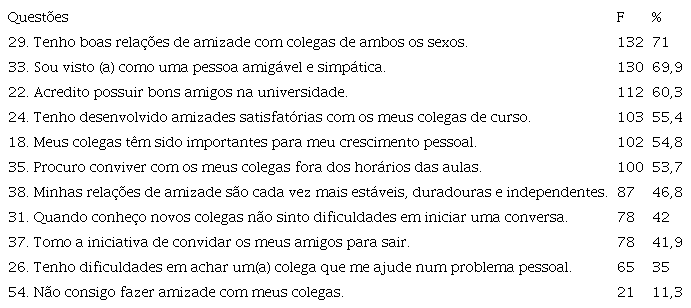 As dificuldades na dimensão interpessoal no início do ciclo universitário podem interferir negativamente na continuidade futura dos estudos, uma vez que, como apontam Araújo et al. (2016), o sucesso e envolvimento acadêmico estão aliados à construção de redes positivas de relações com pares e com professores no contexto universitário.