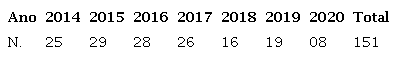 O total das pesquisas por ano se distribuiu conforme exposto na tabela 1: