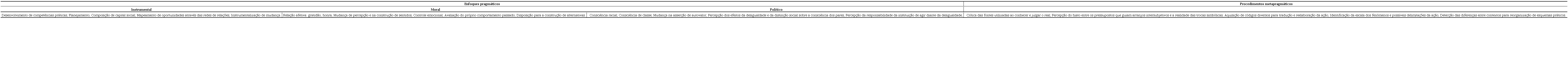Os enfoques pragmáticos são respostas a eventos práticos: através deles, os indivíduos modulam sua ação com base nas classificações que operam sobre os fatores encontrados em circunstâncias de desafio. Encontramos uma abordagem instrumental dirigida a resultados, por exemplo: mudar a situação material da família; adquirir uma profissão; obter remuneração; e conquistar status social. Envolve cálculos como viabilidade de ingresso em cursos de acordo com a concorrência; responsabilidade com as aulas; e organização financeira para se manter com auxílios ou conciliando estudos e trabalho. Outra abordagem, moral, diz respeito a valores, como: desempenhar um exemplo em um grupo social; conquistar espaço para o grupo familiar; valorizar o conhecimento acadêmico e o prazer envolvido em seu exercício; julgar mérito; e mobilizar-se emocionalmente por afetos de gratidão e honra. Por fim, a abordagem política pode estar associada a afetos de indignação, ressentimento e injustiça diante de comportamentos elitistas, de cunho classista; percepção e ação a partir da cor ou raça, diante da ausência de reconhecimento e integração em cursos que reforçam os padrões de segregação racial da sociedade; incongruências do contrato pedagógico; e conflito com as antinomias burocráticas. Nesse registro político, percebem-se necessidades de mudança e se identificam pontos-chave na performance da universidade que vulnerabilizam os estudantes e aventam soluções possíveis.