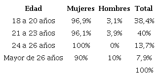 Inicialmente, la muestra estuvo compuesta por 261 estudiantes pertenecientes al grado de Educación Infantil de la Universidad de Córdoba (España), pero tras un proceso de normalización fue reducida a 255, de los cuales un 96,5% eran mujeres; y un 3,5%, hombres, con un intervalo de edad de 18 a mayores de 26 años. La muestra siguió la mencionada distribución en cuanto al sexo (Tabla 1):