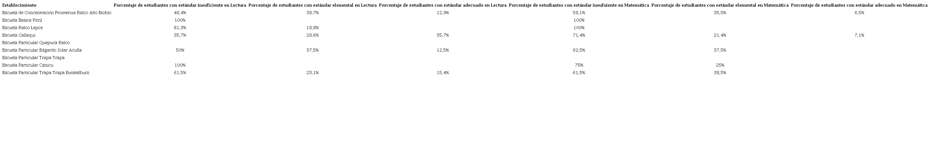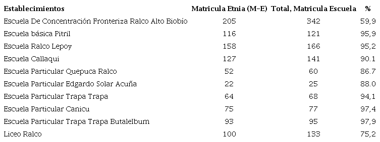 A continuación, se presenta un recuadro con las escuelas incluidas en el estudio del Alto Biobío.
