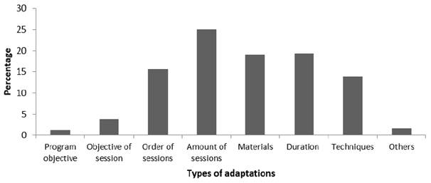Results: the main barriers were related to the implementation of sessions and the user’s characteristics such as educational level. As a consequence, the main adaptations were related to the increase in the number of sessions, modifying their length and changing the sequence as well as the proposed material in the manuals.