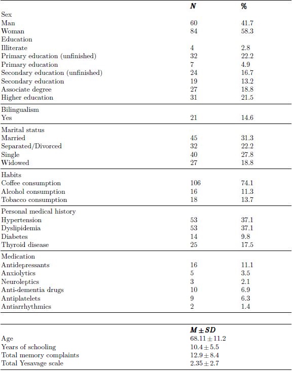 The study included 144 adults over the age of 49, selected through non-probabilistic sampling. Subjects who fulfilled the requirements to participate were identified using the snowball technique; and they, in turn, helped locate other participants with similar characteristics.