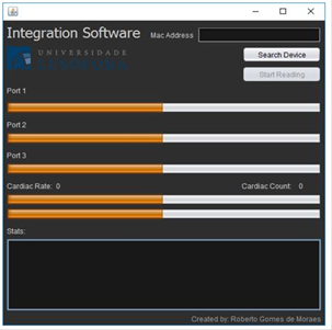 However, for a better optimization in the software development process, we developed a software application in JAVA to connect the data captured by the Biosignalsplux sensors with Unity, to what we call BiosignalsPlux Unity Integration software (Figure 2). The Java application reads the data from the device, sends it to a remote database (SQL Server) so that Unity can read it. The latency of reading the data from the graphics engine, whether within the database network or external network, was averaging only 10 milliseconds. Despite this limitation, the implementation of data reading remotely has three major advantages: a) Reading and interpreting data can be done in separate locations; b) All data can be saved and accessed on a secure server; c) There can be multiple accesses to the data, updated in real time or later through the database.