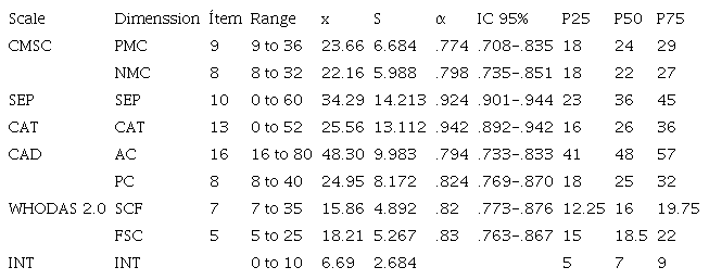 Given that this research has as its main objective the modeling of a theoretical structure, the data analysis involved two moments. In the first of them, a descriptive analysis of the variables and a correlational analysis between them were performed using the SPSS 20® program. For this, the levels of reliability and adequacy to the factorial analysis of the variables were determined.
