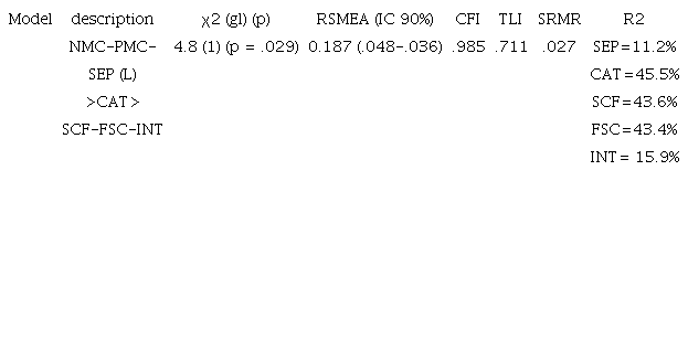 An important limitation of the study was the sample size, due to its influence on the analysis of structural equations. However, it should be mentioned that access to this type of clinical samples is usually very limited. Other investigations that include larger sample sizes should be considered.
