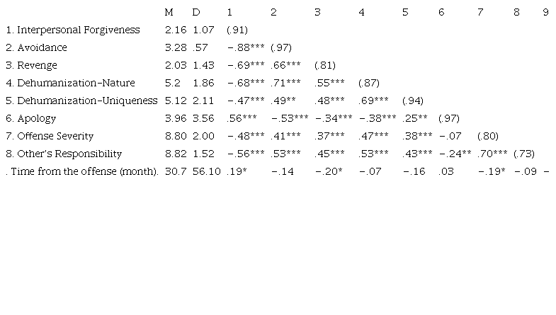 Keywords: Interpersonal Forgiveness, avoidance, revenge, dehumanization.