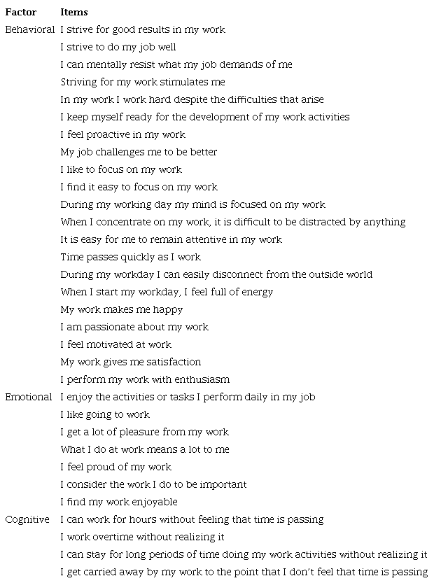 In this order of ideas, it should be clarified that the present instrument responds to the measurement of work engagement.