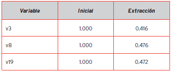 Las comunalidades más bajas encontradas son las que se muestran en la tabla 2.