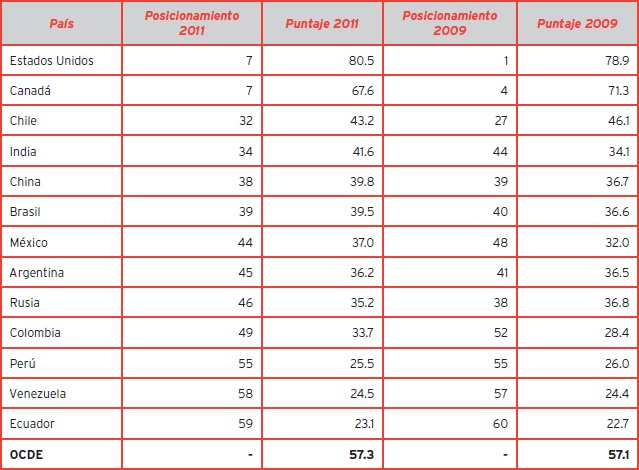 Economist (2011), "IT Industry Competitiveness Index", en Magazine The Economist, http://globalindex11.bsa.org/ [Consulta: marzo de 2015].