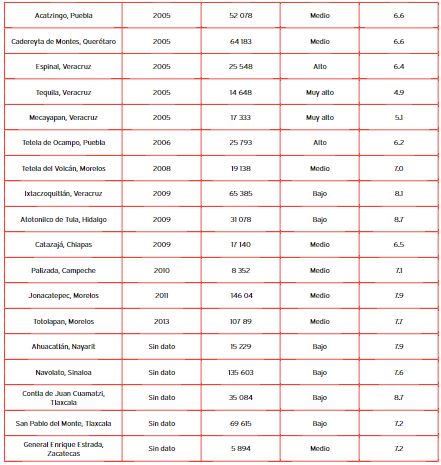 Para dar respuesta a estas preguntas se consultó la información de las sedes disponible en las páginas web de cada una de las UA y el Anuario Estadístico 2014-2015 de la Asociación Nacional de Universidades e Instituciones de Educación Superior (ANUIES, 2015). Los datos recolectados fueron: el número de sedes por cada UA, los años de fundación, los municipios en que se ubican, las solicitudes de ingreso, el número de estudiantes aceptados, las matrículas, así como el número de egresados y titulados por sede. También se compilaron el números de egresados y titulados para los tres ciclos escolares anteriores (ANUIES, 2012, 2013, 2014), debido a que sólo a partir del ciclo 2011-2012 se desglosa la información de las IES a nivel municipal. Asimismo, se recaudó información sociodemográfica sobre los municipios sede, utilizando como fuentes el Consejo Nacional de Población (CONAPO, 2010b), el Instituto Nacional de Estadística y Geografía (INEGI, 2015) y la Secretaría de Educación Pública (SEP, 2016). Con base en esta información se hizo una base de datos en el software IBM-SPSS Statistics (versión 21) para analizar la información recopilada. Aquí es necesario señalar que sólo se contemplaron aquellas sedes que están fuera del campus principal o del municipio o delegación donde se ubica la sede central de las universidades.