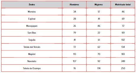 Además de lo señalado previamente, a partir del análisis de los 36 casos descritos, se identificó que las sedes suelen operar por debajo de su capacidad, pues en la mayoría de los casos analizados, el número de estudiantes de nuevo ingreso es menor que el número de lugares ofertados. Otro dato a resaltar entre los resultados es que en general, hay más hombres que mujeres en estas escuelas, sin embargo las mujeres tienen más probabilidad de egresar y titularse. Estas diferencias pueden ser resultado de que la importancia de las credenciales educativas cambia entre hombres y mujeres, de tal forma que, para las mujeres, la educación formal es la única ocupación en un mercado diseñado para los hombres (como sucede en los espacios rurales o periurbanos), y el pasaporte para salir de la región (Corbett, 2005).
