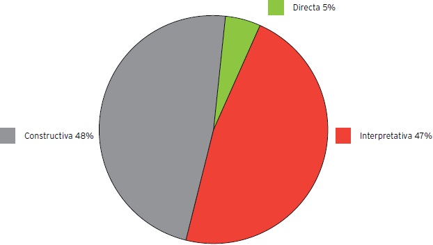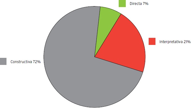 Observando los totales de la Tabla 1, sin discriminar por facultades, puede verse que la opción más elegida corresponde a la concepción constructiva, seguida por la interpretativa y, por último, por la directa.